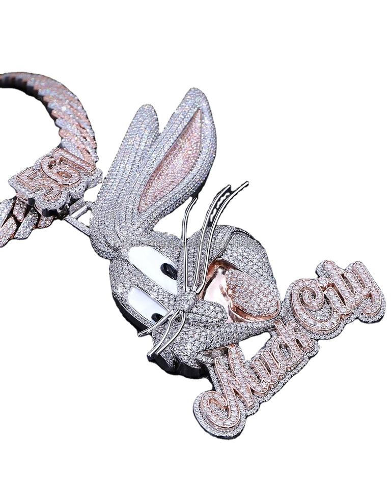 Colgante Personalizado con Diseño de Conejo Adorable, Totalmente Cubierto de Diamantes, con Detalles Claros y Moissanita VVS, Amuletos de Animales Personalizados