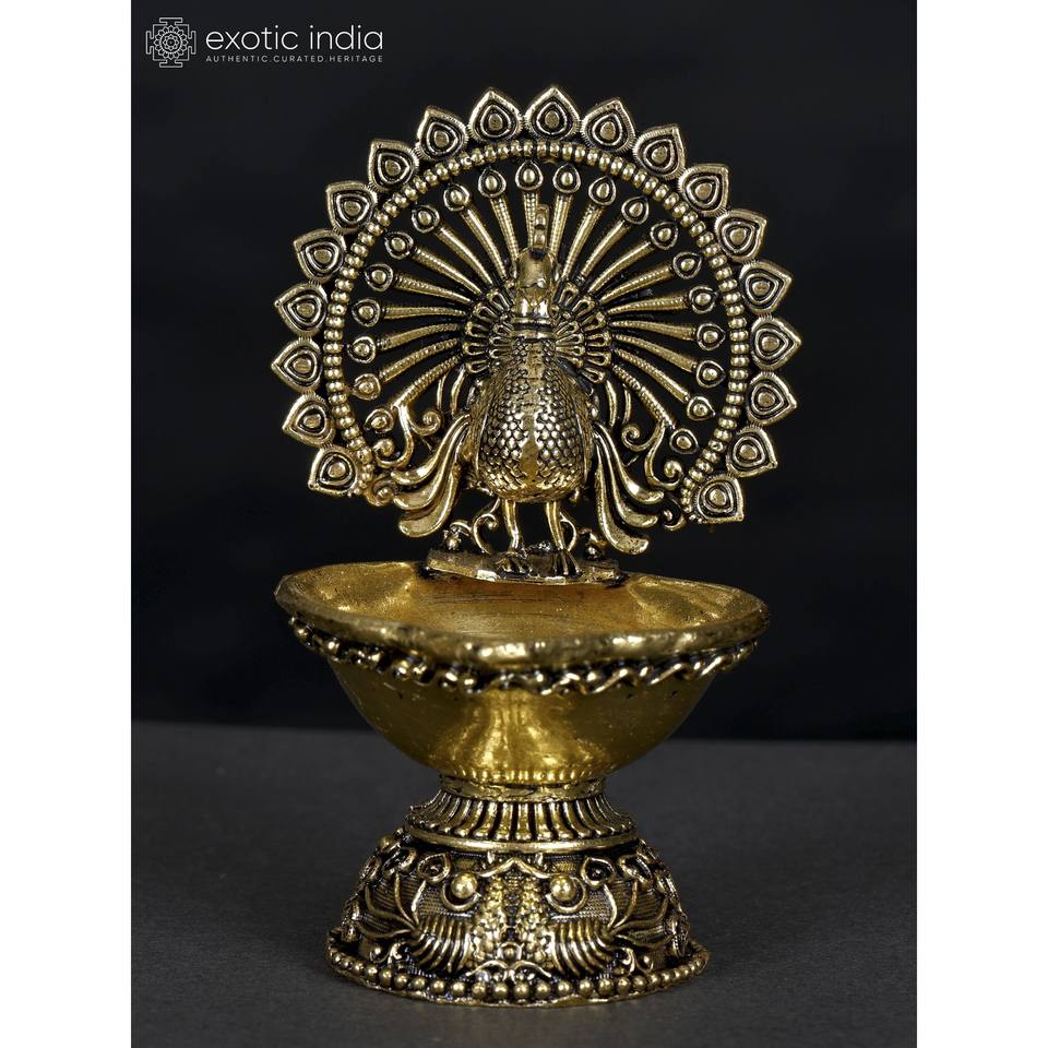 4 pulgadas pequeño superfino diseñador Pavo Real Diya artículo de latón hecho a mano para decoración del hogar y regalos hecho en La India