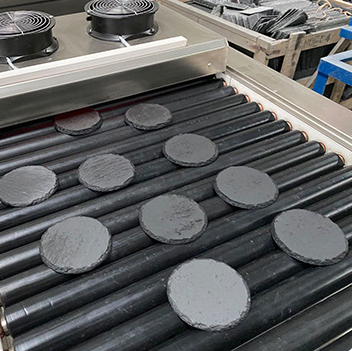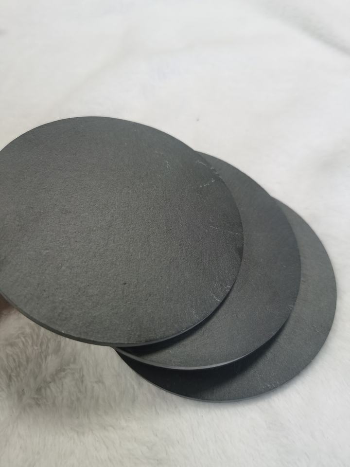 Posavasos de pizarra redondos de 4 pulgadas de diámetro y 1/4 de espesor con un gres de cocina de borde completamente recto