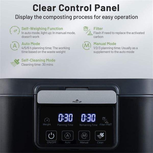 Compostador Eléctrico de 4 L con Pantalla LED y 2 Filtros de Carbón Activado, Electrodomésticos de Cocina con Tapa
