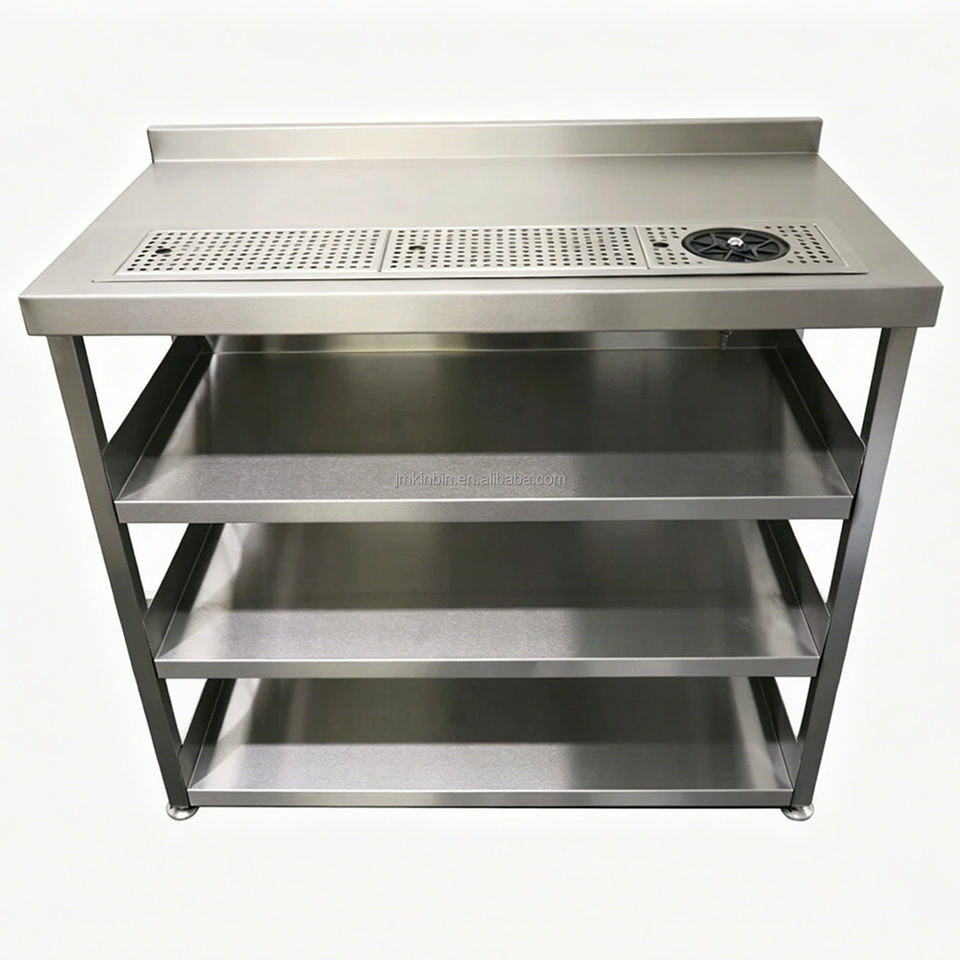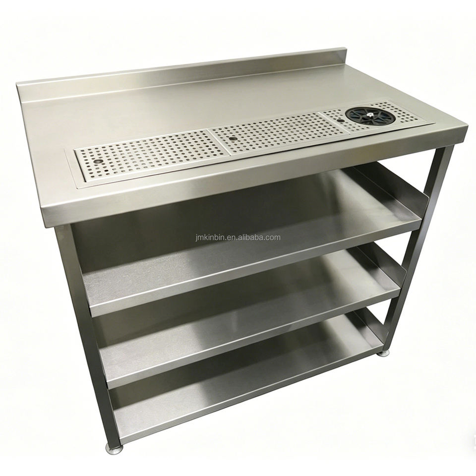 Mesa de Servicio de Bebidas de 4 Niveles con Tabla de Drenaje y Enjuagador de Vasos, Mostrador Comercial para Bebidas para Cafetería o Bar de Té con Leche