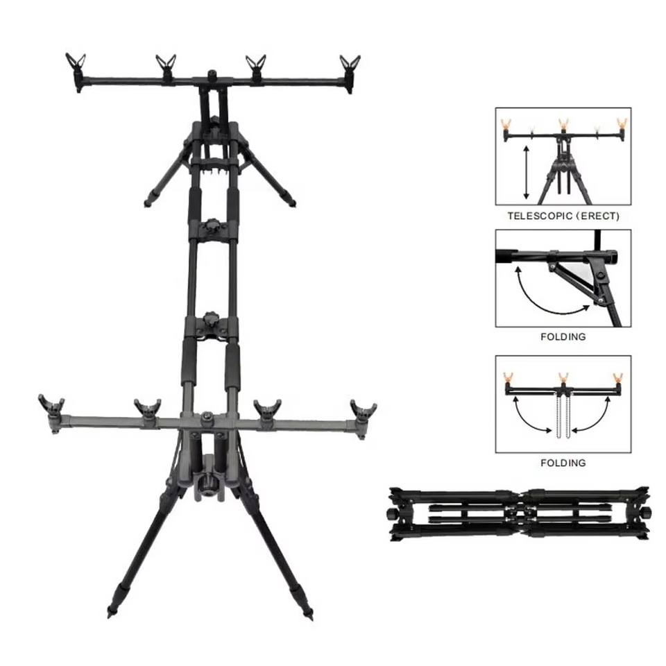 Soporte telescópico plegable de 4 patas para caña de pescar de carpaNombre del Producto