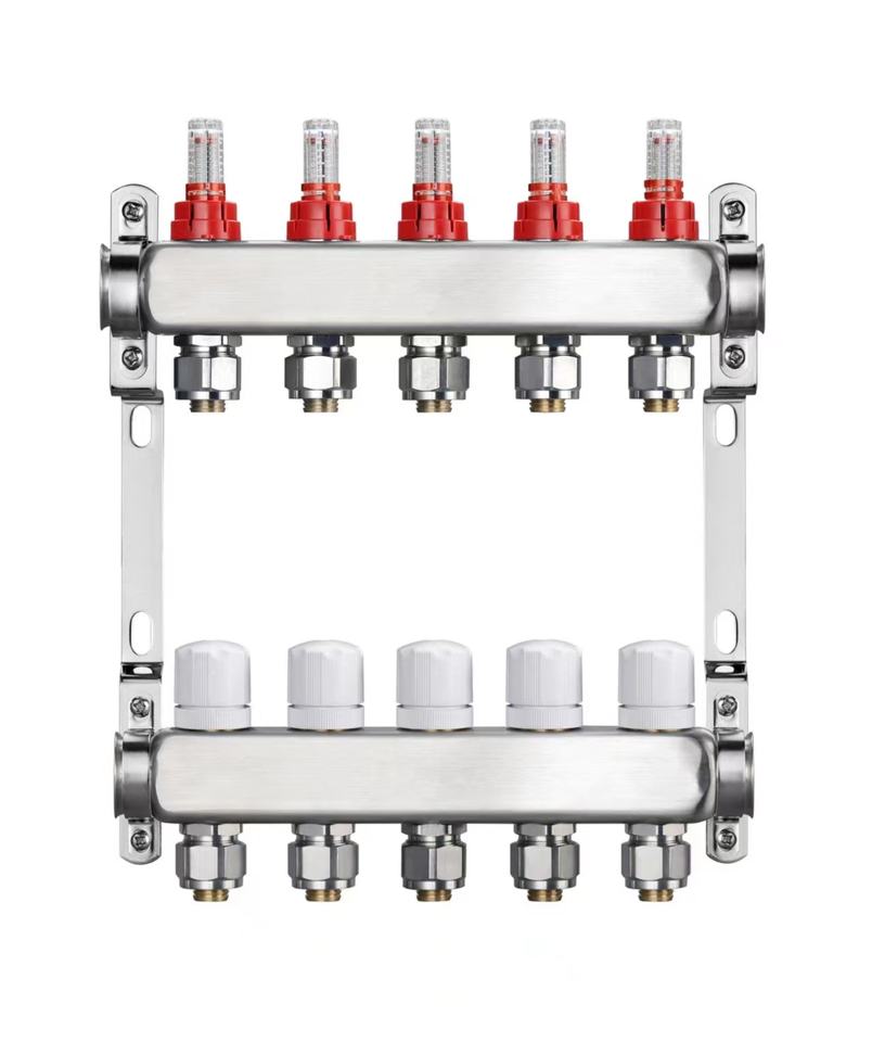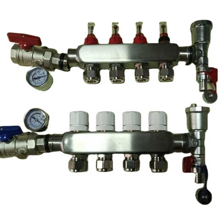 Colector de Calefacción por Suelo Radiante de Acero Inoxidable de 4 Circuitos con Válvula de Bola y Válvula de Ventilación
