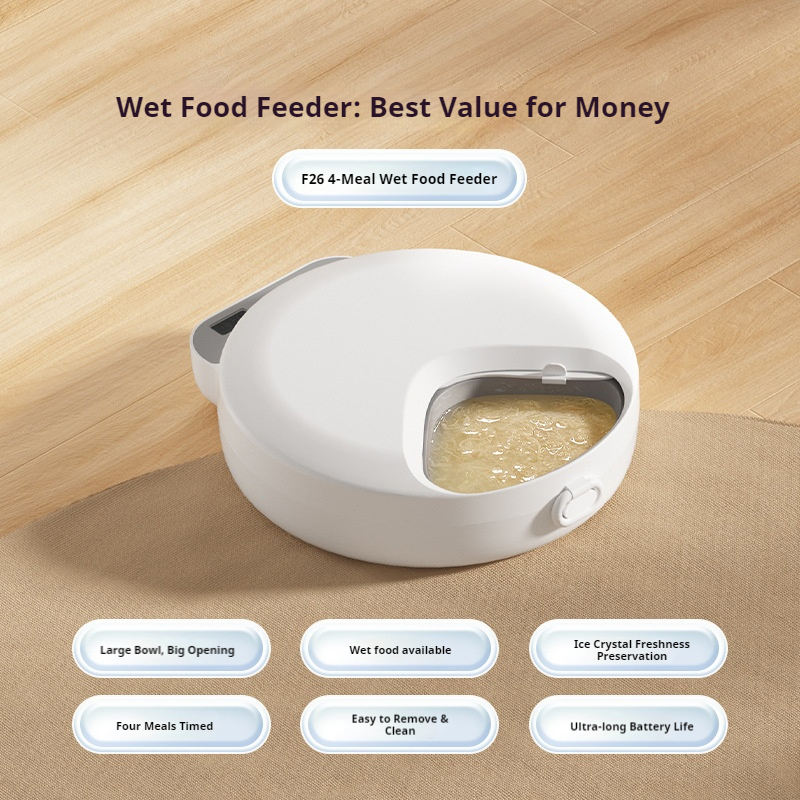Dispensador de Comida Seca y Húmeda Programable para 4 Comidas, con Recipiente Desmontable y Lavable, Comedero Automático para Perros y Gatos