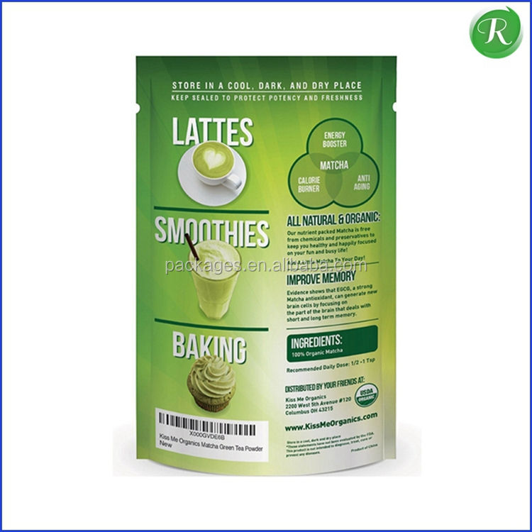 4 OZ encargo Stand Up Matcha bolsas de embalaje con cierre de cremallera