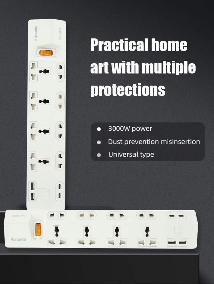 Enchufe de Corriente de la Serie PRIMA con 4 Tomas de Corriente para PC de 13 A, Diseño Único Multi UK/EU, 2 Puertos USB, 2 Puertos USB C, Interruptor de Sobrecarga