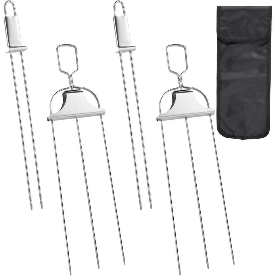 4 Brochetas de Acero Inoxidable de 14 Pulgadas para Asar, Accesorios para Barbacoa con Deslizadores de Empuje
