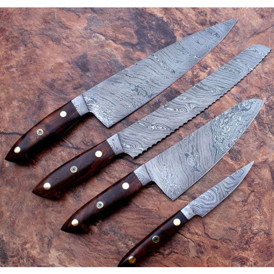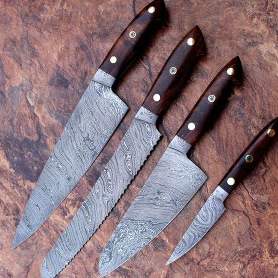Juego de cuchillos de Chef profesional de acero de Damasco japonés, 4 Uds., mango de palisandro, cocina, carniceros, cuchillos de verduras Premium, lavavajillas