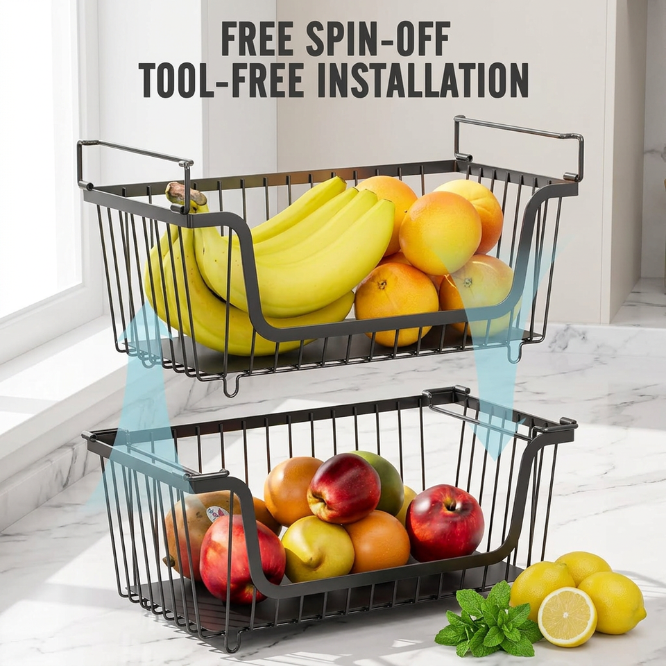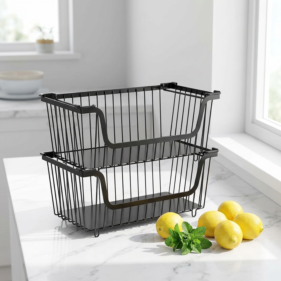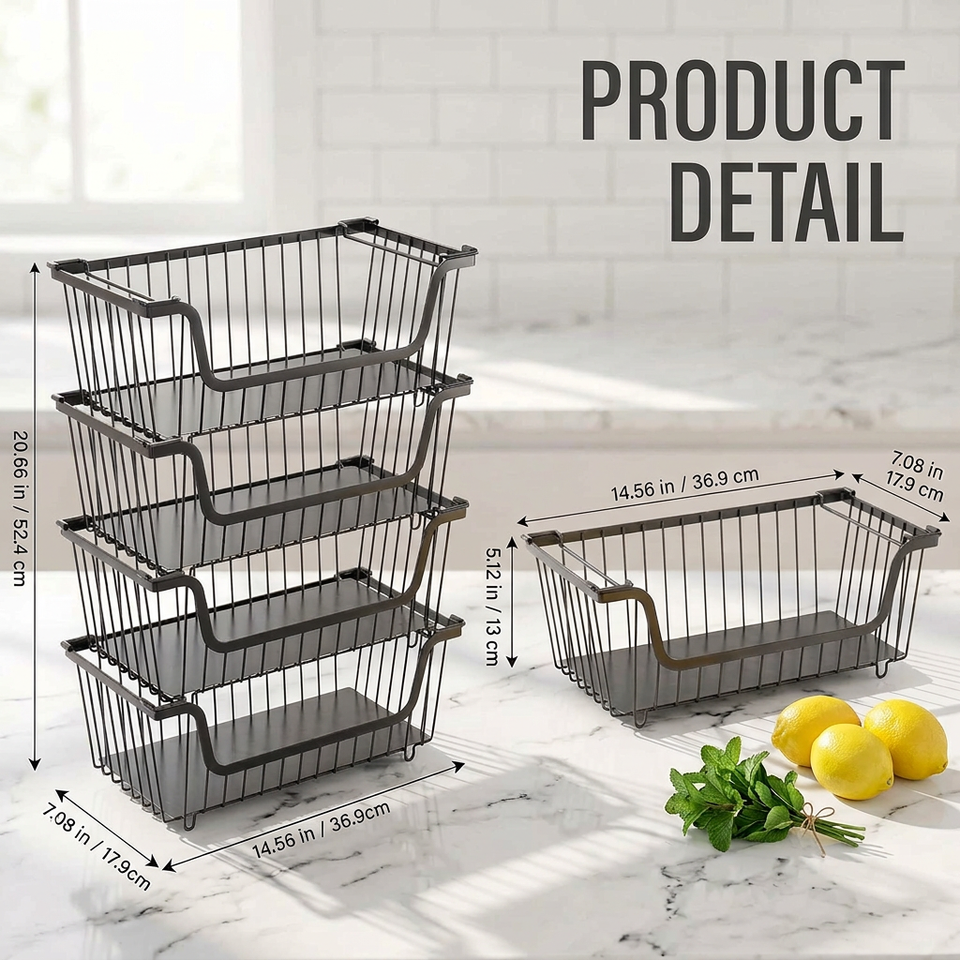 Paquete de 4 Cestas Apilables de Alambre para Organizar Armarios de Despensa, Refrigerador, Congelador, Almacenamiento de Verduras, Patatas, Cebollas, Frutas