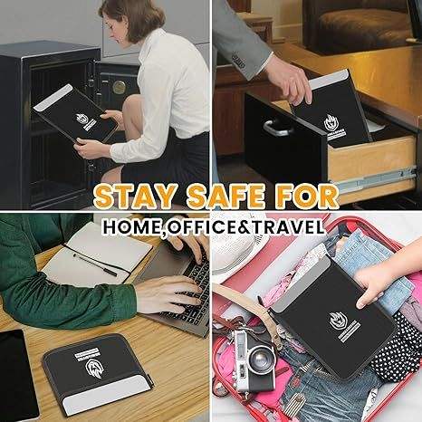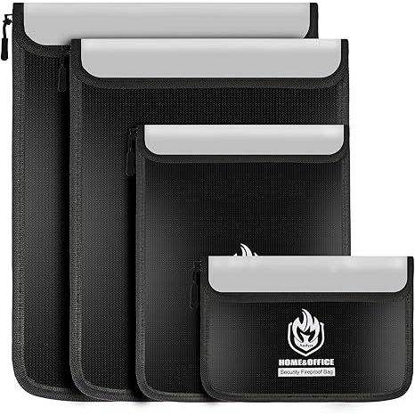 Paquete de 4 bolsas para documentos ignífugas, bolsa impermeable para documentos con cremallera, bolsa para dinero y sobre ignífuga