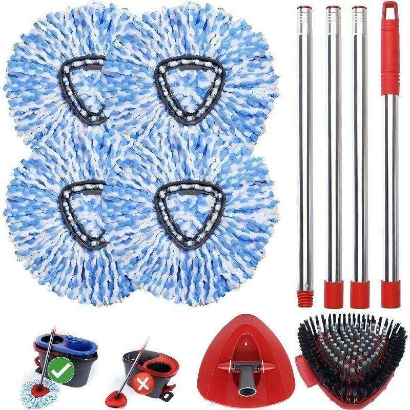 Paquete de 4 Paños de Repuesto para Mopa con Cepillo de Limpieza Profunda y Mango, Recambios de Cabezal de Mopa de Microfibra Multifunción para Vileda Rinseclean