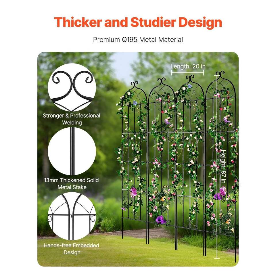 Paquete de 4 Enrejados Metálicos para Flores de Jardín, Resistentes a la Oxidación, 87 x 20 Pulgadas, Enrejado para Rosas Trepadoras, Cercas, Enrejados y Puertas