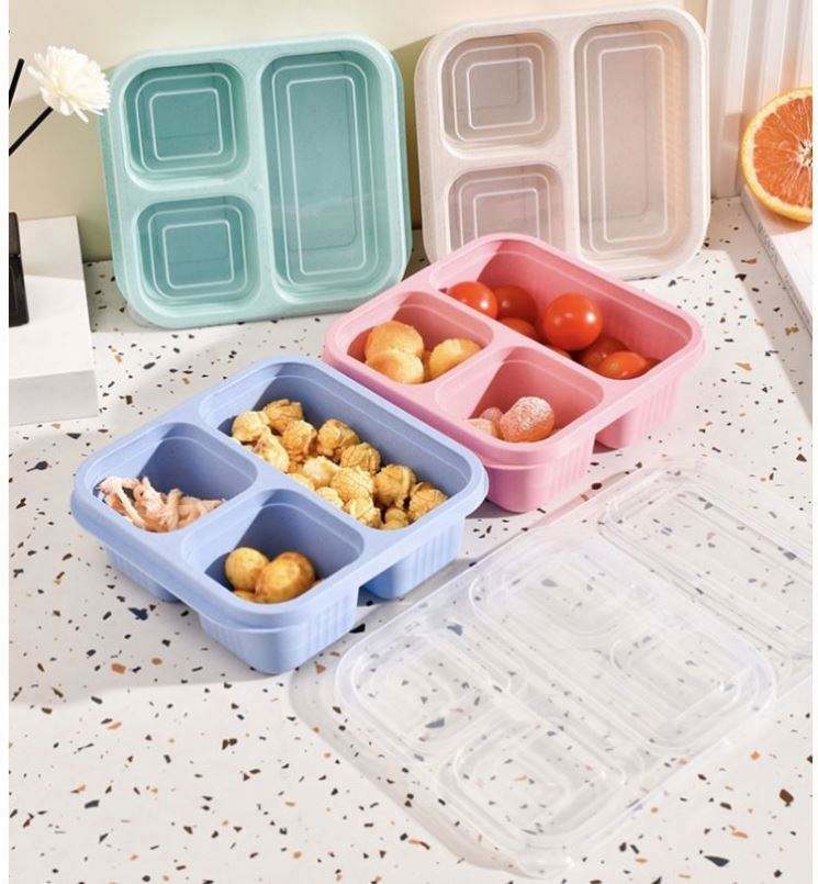 Paquete de 4 contenedores de aperitivos Bento de 4 compartimentos, contenedores de almuerzo reutilizables, contenedores de almacenamiento de alimentos divididos para viajes de trabajo