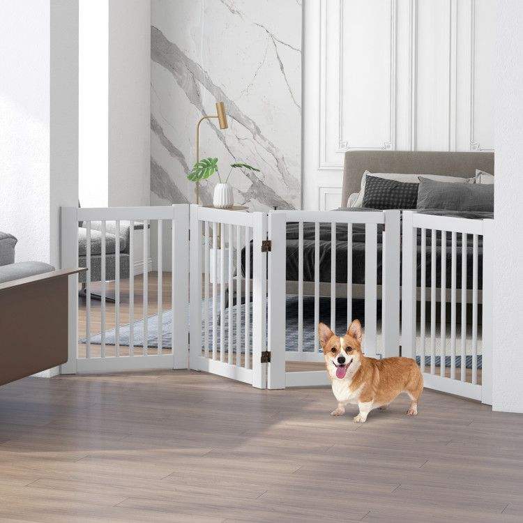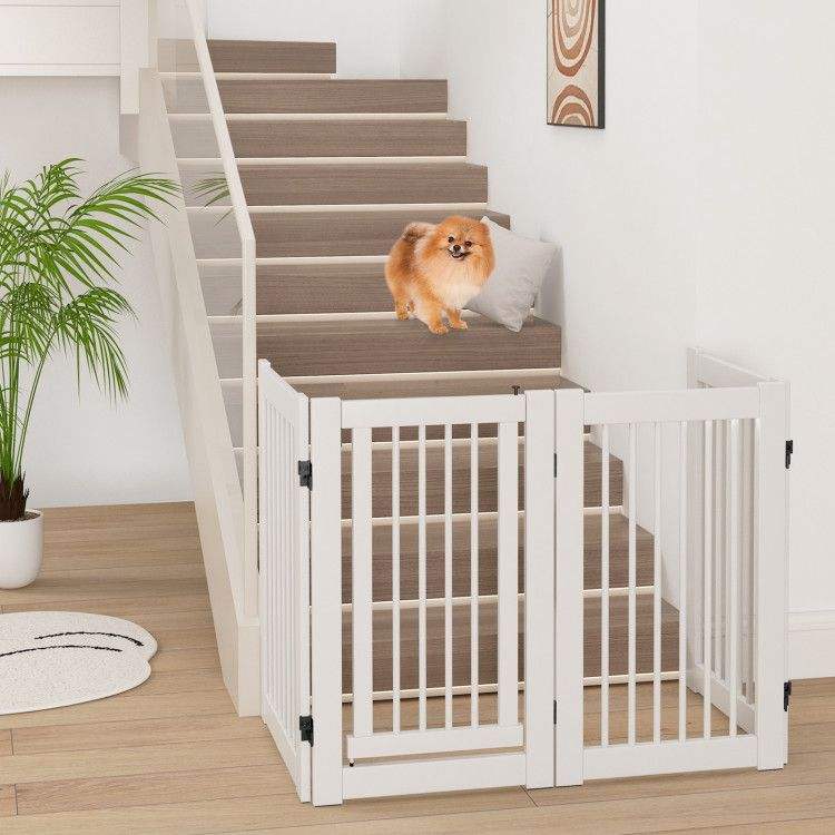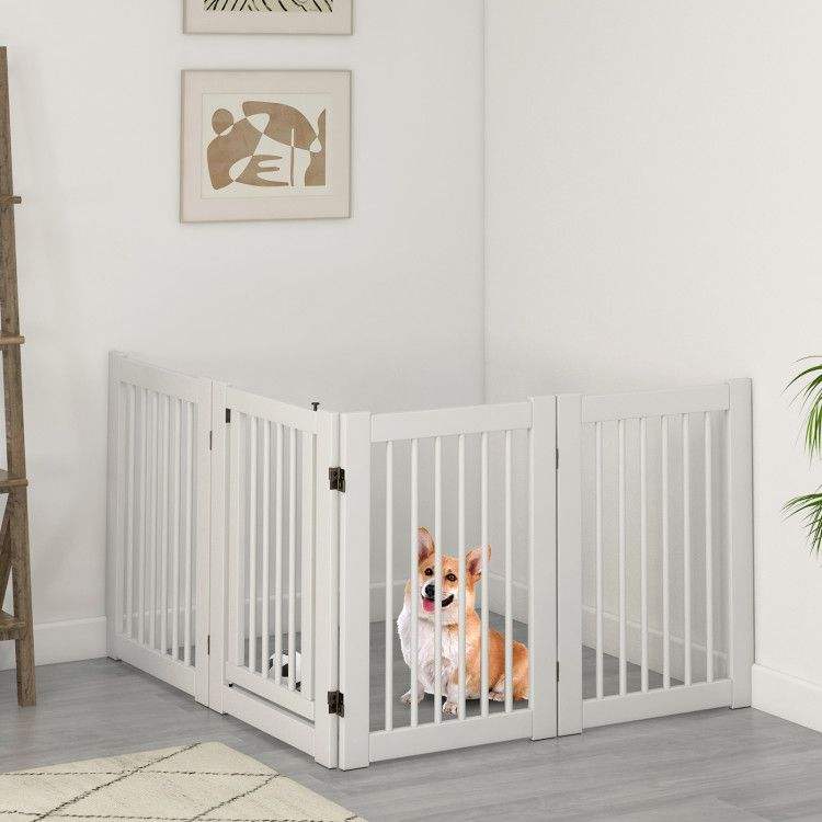 Valla de madera independiente de 4 paneles y 30 pulgadas de altura para perros, puerta y corral para mascotas
