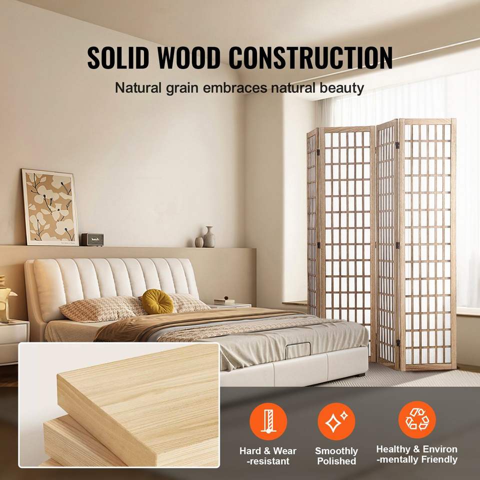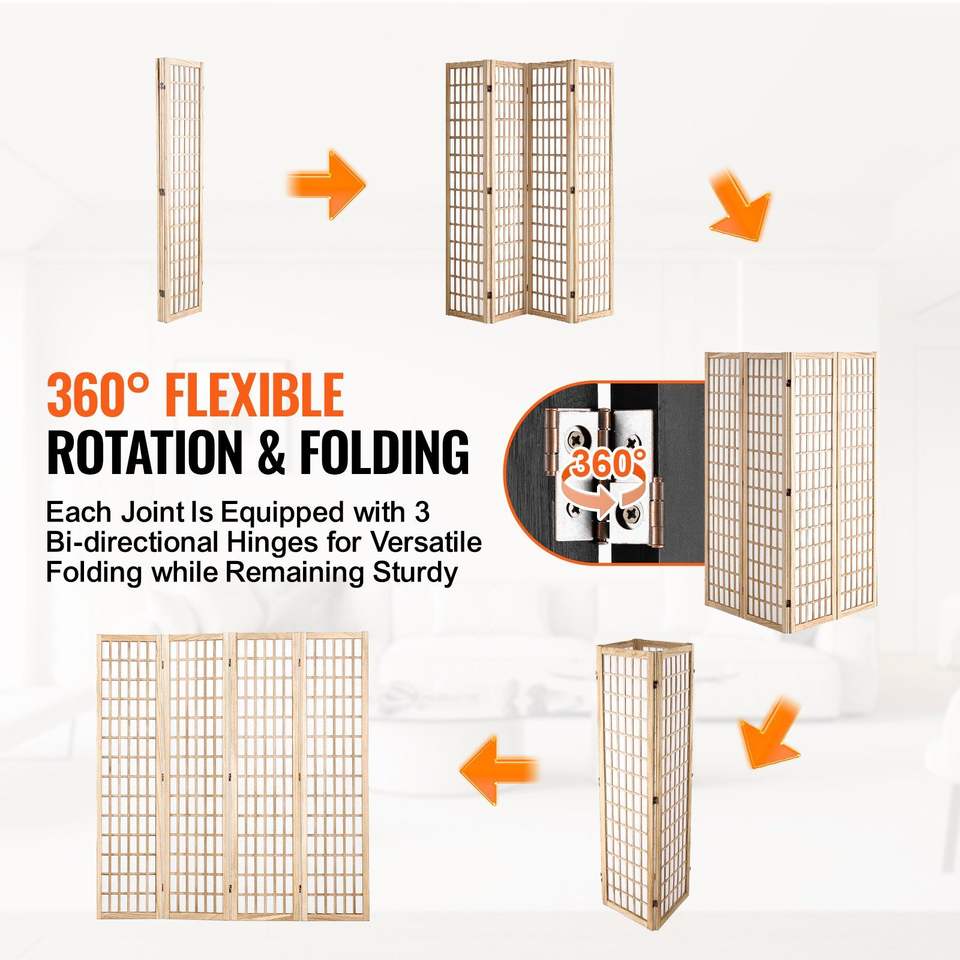 Biombo Japonés de 4 Paneles, Separador de Ambientes Plegable para Interiores, con Características Decorativas