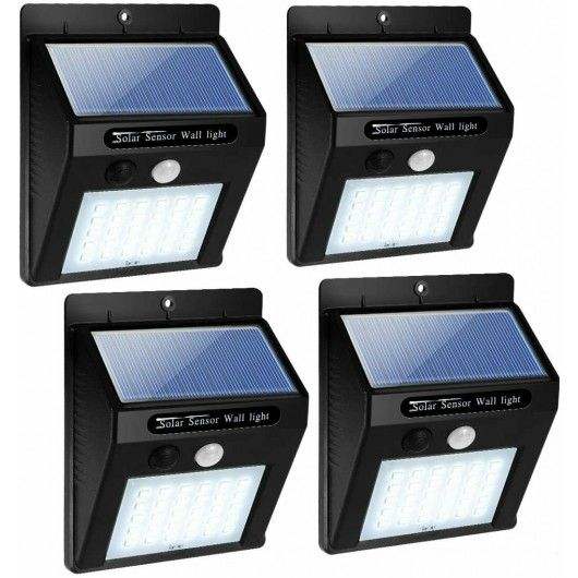4 Luces Solares de Jardín con 30 LED y Sensor de Movimiento, Lámparas Solares de Pared para Caminos