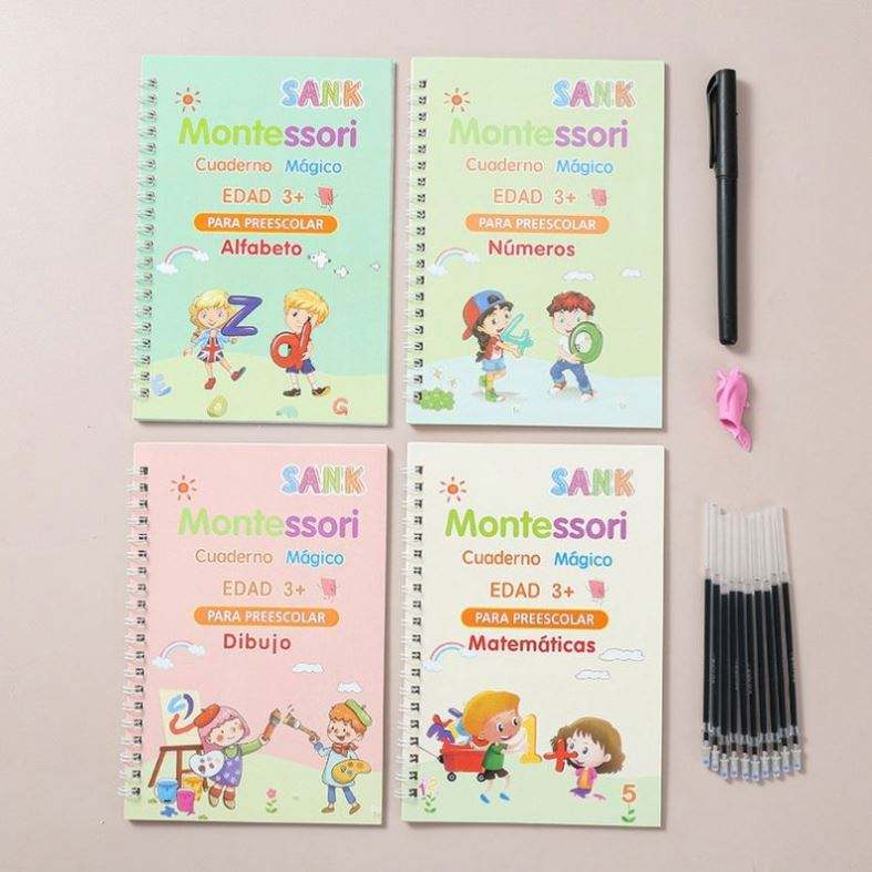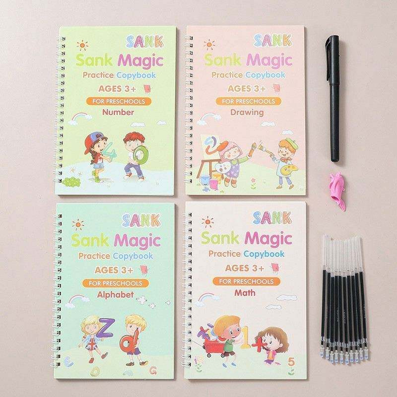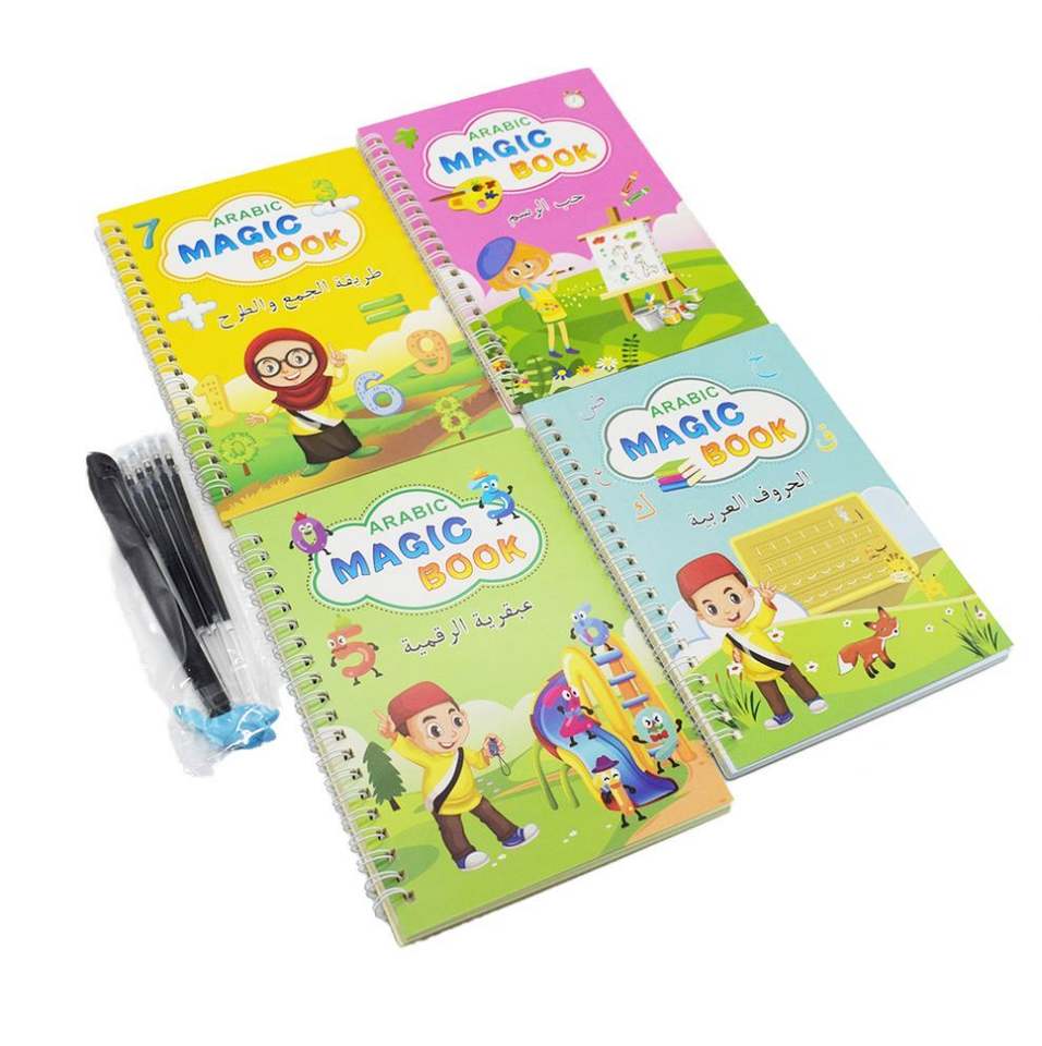 4 Cuadernos Mágicos Reutilizables de Caligrafía Árabe para Práctica de Escritura a Mano, Libros de Impresión para Niños