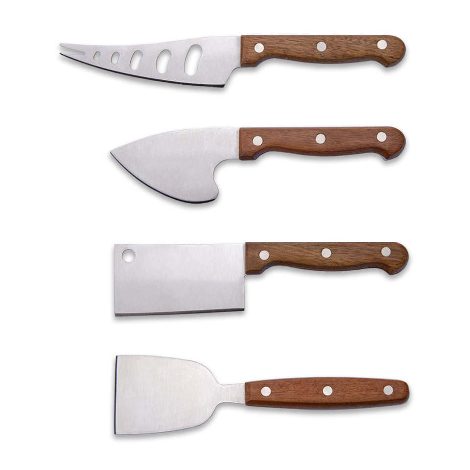 Juego de cuchillos para queso de 4 piezas con mango de madera \ Herramientas y cuchillos profesionales para queso de cocina al por mayor
