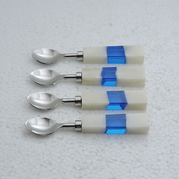 Juego de mango con incrustaciones de piedra de mármol y metal de 4 piezas con cuchara de acero inoxidable para obsequios