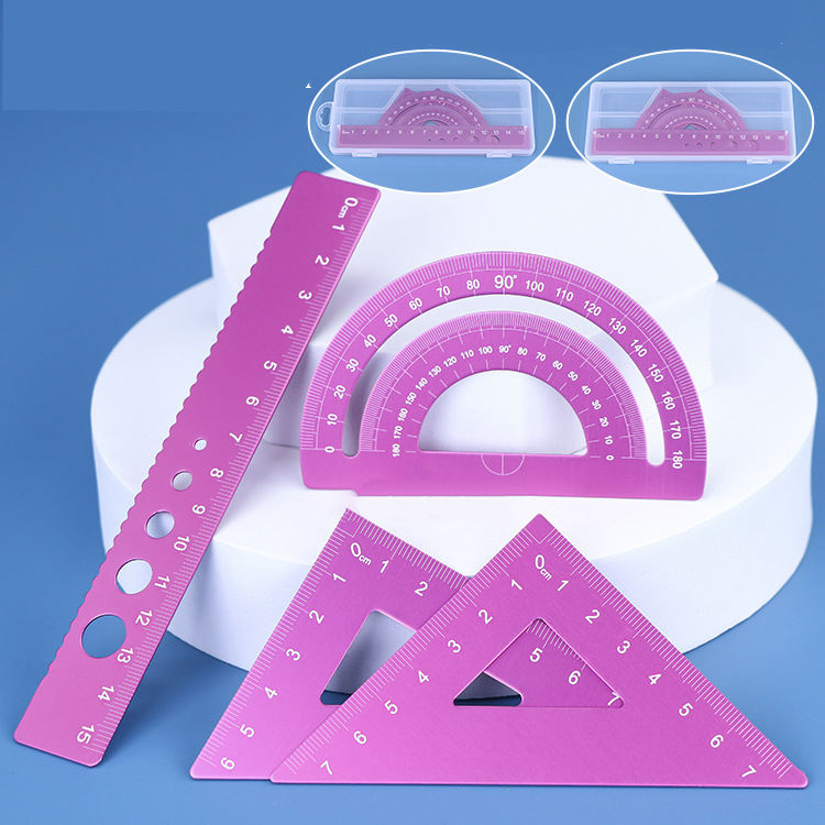 Juego de 4 Reglas Metálicas de 15 cm, Triángulo de 60 y 30 Grados, Transportador y Escuadra, Marca Personalizable