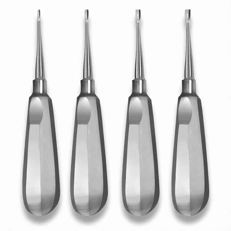 Juego de 4 Elevadores Quirúrgicos Manuales con Puntas de 1mm y 4mm, Mango Estándar, Instrumentos Dentales de Elevación de Raíces de Acero Inoxidable de Alta Calidad