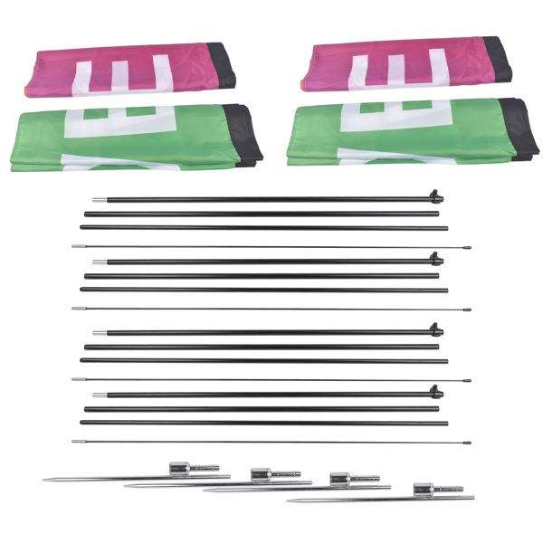 Juego de 4 Banderas Publicitarias Tipo Pluma con Kit de Mástil y 4 Estacas para Promoción Empresarial, 4 Banderas