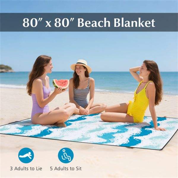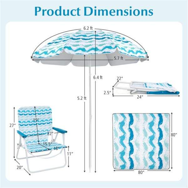 Juego de Playa de 4 Piezas, Manta Impermeable Azul de 80"x80", Sombrilla de 6.2 Pies Resistente al Sol, 2 Sillas Plegables