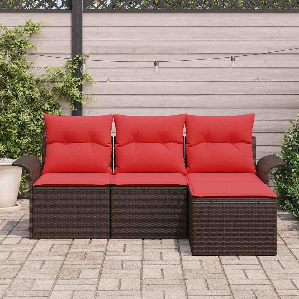 Juego de sofás de jardín de ratán sintético marrón de 4 piezas con cojines