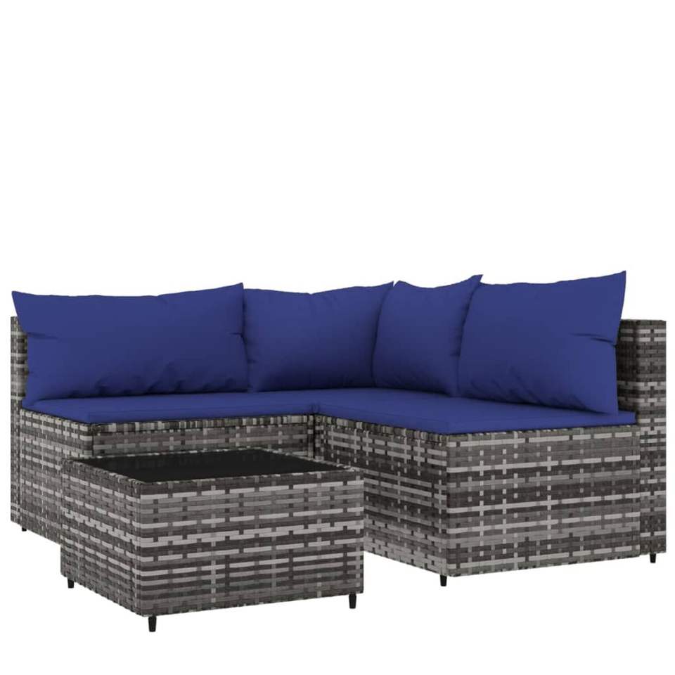 Juego de salón de patio de ratán polivinílico gris de 4 piezas con cojines Juegos de jardín