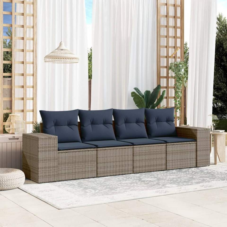 Juego de sofás de jardín de ratán sintético gris de 4 piezas con cojines
