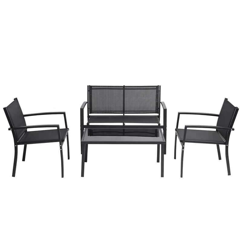 Juego de Muebles de Jardín de 4 Piezas, Sofá para Patio, Terraza, Piscina, con Sillas Plegables y Mesa