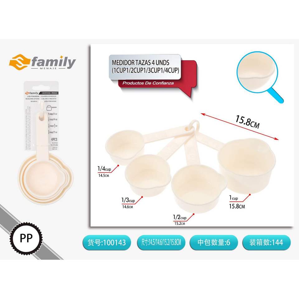 Juego de tazas medidoras de cocina de 4 piezas Juego de cucharas apilables con capacidad de 60ml 15ml que incluye 1 taza 1/2 taza 1/3 taza 1/4 taza