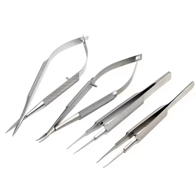 Juego de instrumentos quirúrgicos oftálmicos de 4 piezas Manual 12cm 14cm 16cm Kit de cirugía ocular de acero inoxidable con tijeras y fórceps