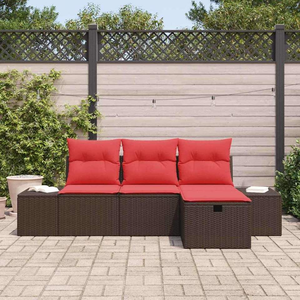 Conjunto de Sofá de Jardín de 4 Piezas de Ratán Sintético con Cojín de Almacenamiento