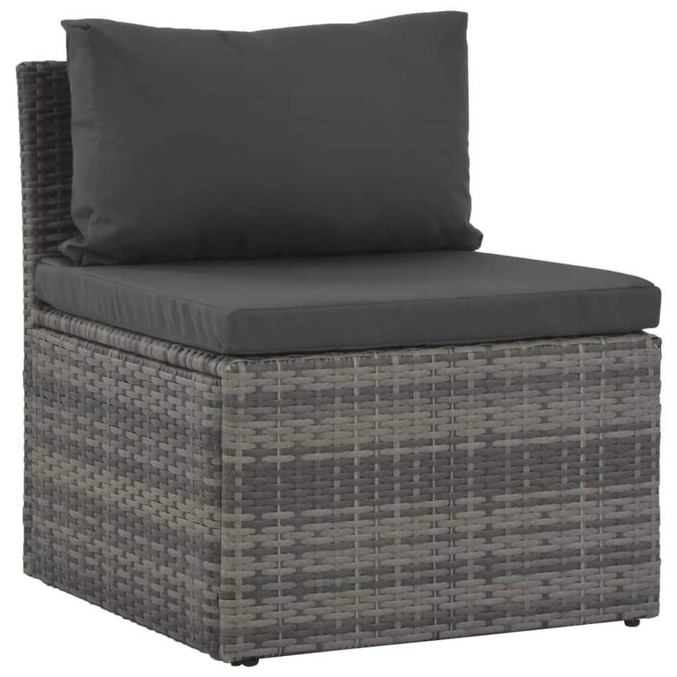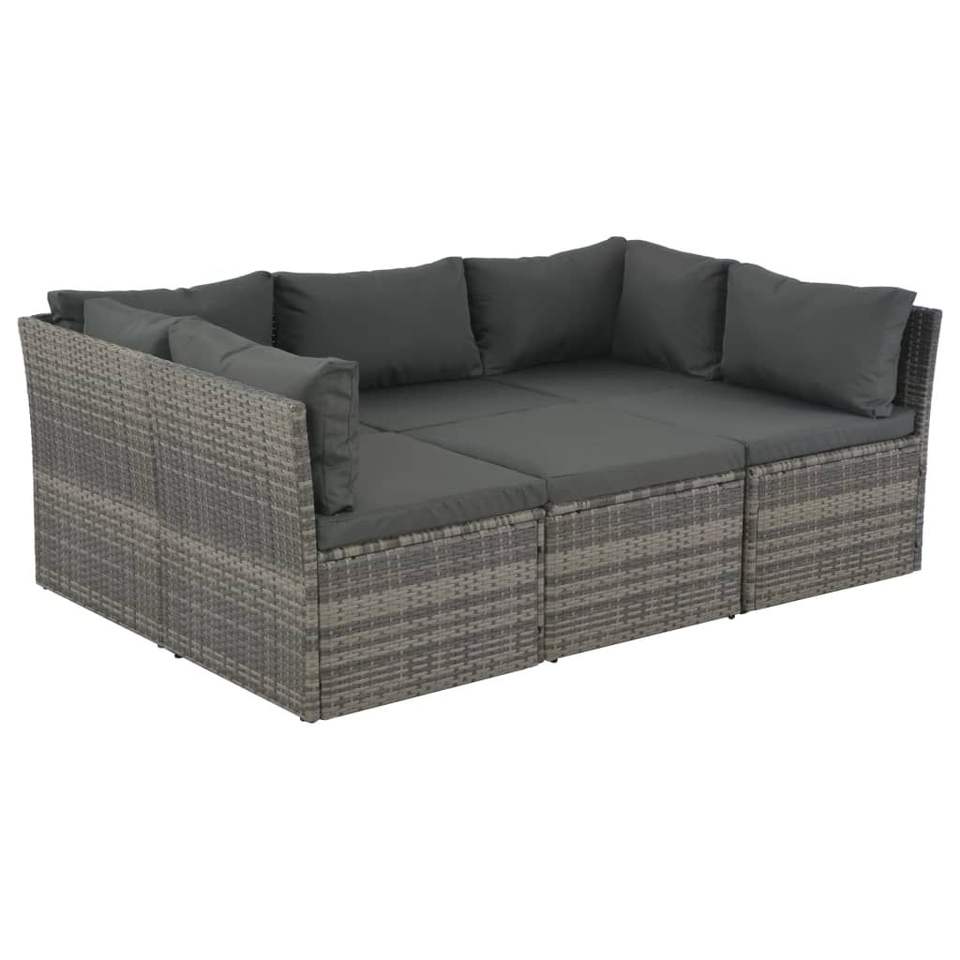 Juego de salón de patio gris poli ratán de 4 piezas con cojines para uso en el jardín