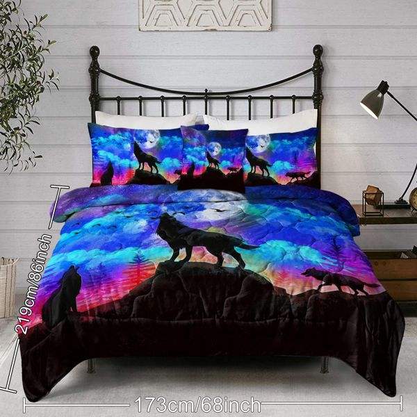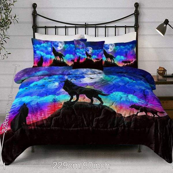 Juego de 4 Piezas, Funda de Edredón con Diseño de Tres Lobos aullando, Juego de Ropa de Cama Suave, Tamaño Grande, Cómodo, Cultura Tradicional Misteriosa para Temu