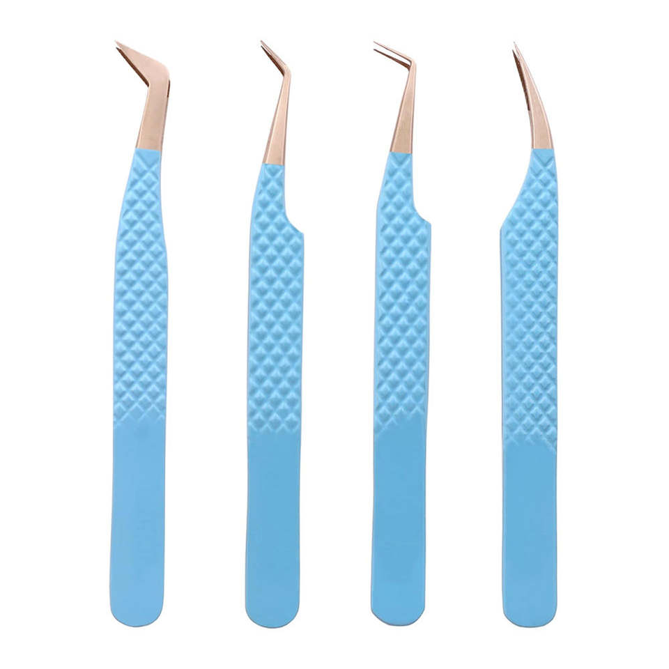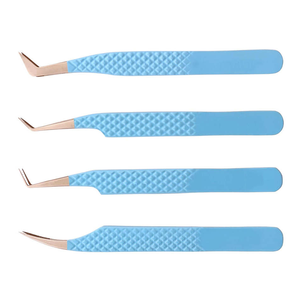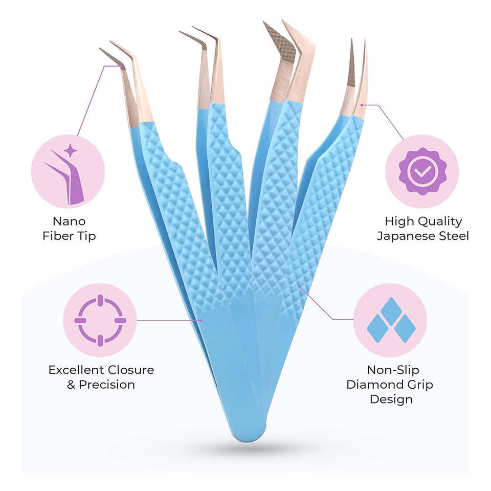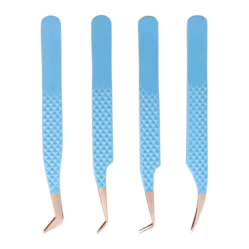 Kit Profesional de Extensión de Pestañas de 4 Piezas, Juego de Pinzas Antiestáticas de Acero Inoxidable, Puntas de Fibra Lisas/Serradas Personalizadas