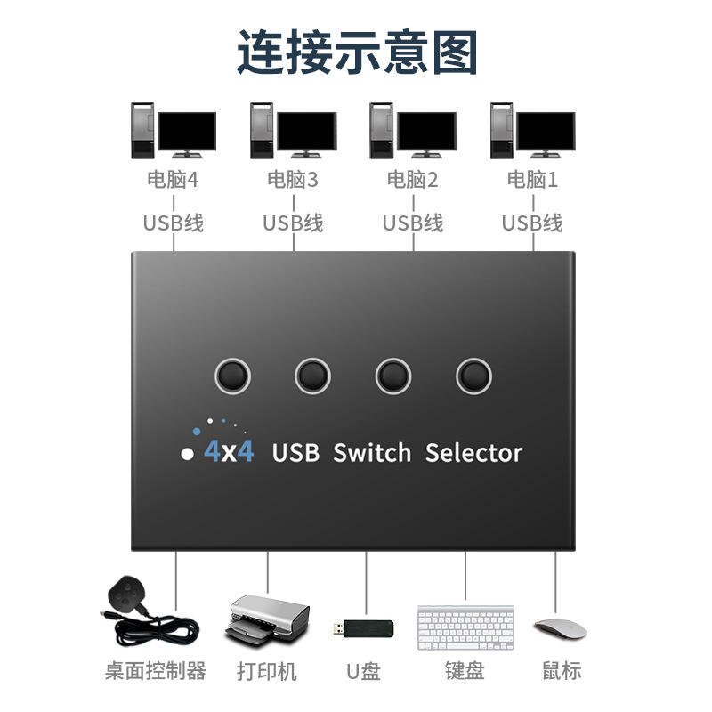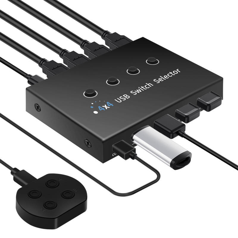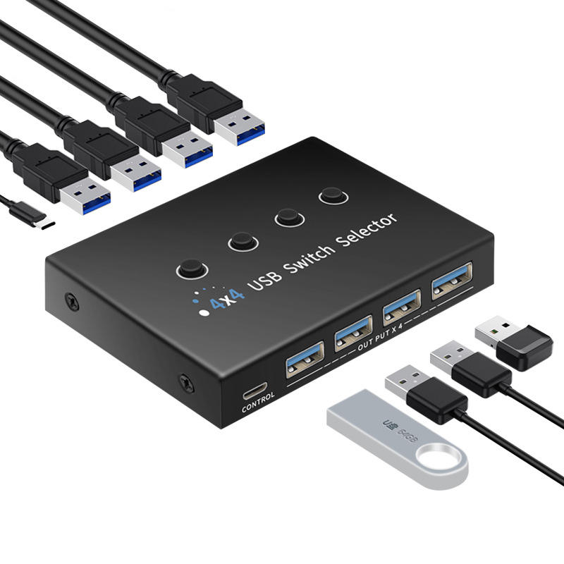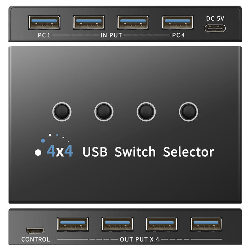 PC de 4 puertos que comparten 4 Dispositivos 4 en 4 salidas Selector de interruptor KVM USB 3,0