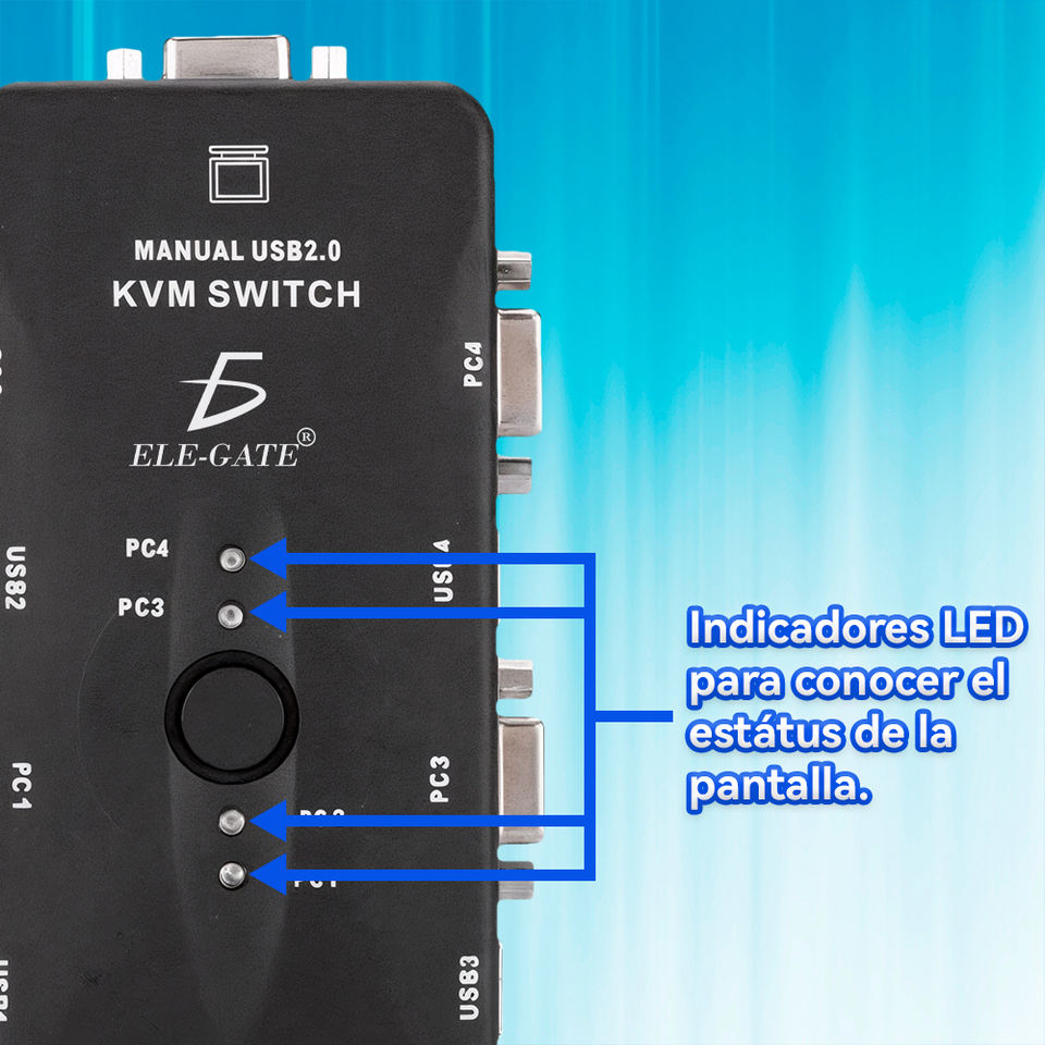Conmutador KVM USB VGA de 4 Puertos ELE-GATE CON.XJS02 con Interfaz DVI para 4 PC, un Solo Monitor, Teclado y Ratón, Resolución 4K 1920x1440