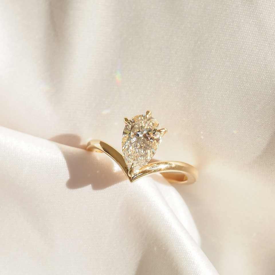Juego de 4 puntas Corte de pera Bonito anillo de propuesta de compromiso para mujer Hecho con plata 925 10K 14K 18K Oro sólido