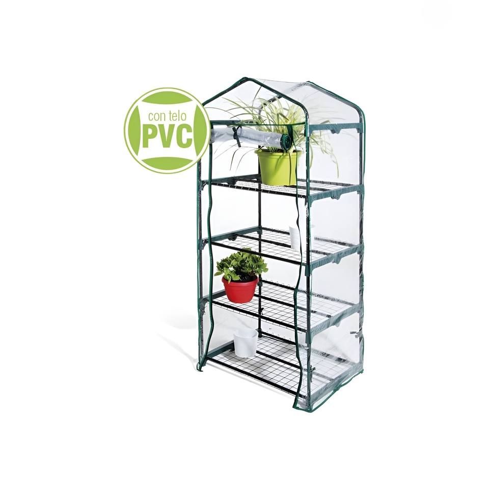 Invernadero Metálico de 4 Estantes con Cubierta de PVC 69X49 H. 157CM Impermeable Hecho en Italia