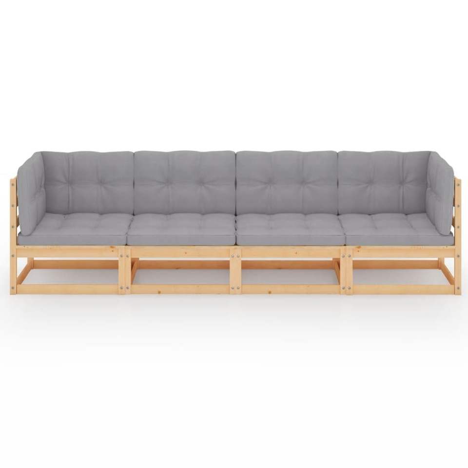 Sofá Modular de Jardín de 4 Plazas en Madera de Pino Sólido Gris con Tela y Diseño Confortable