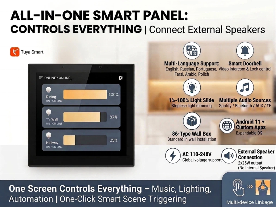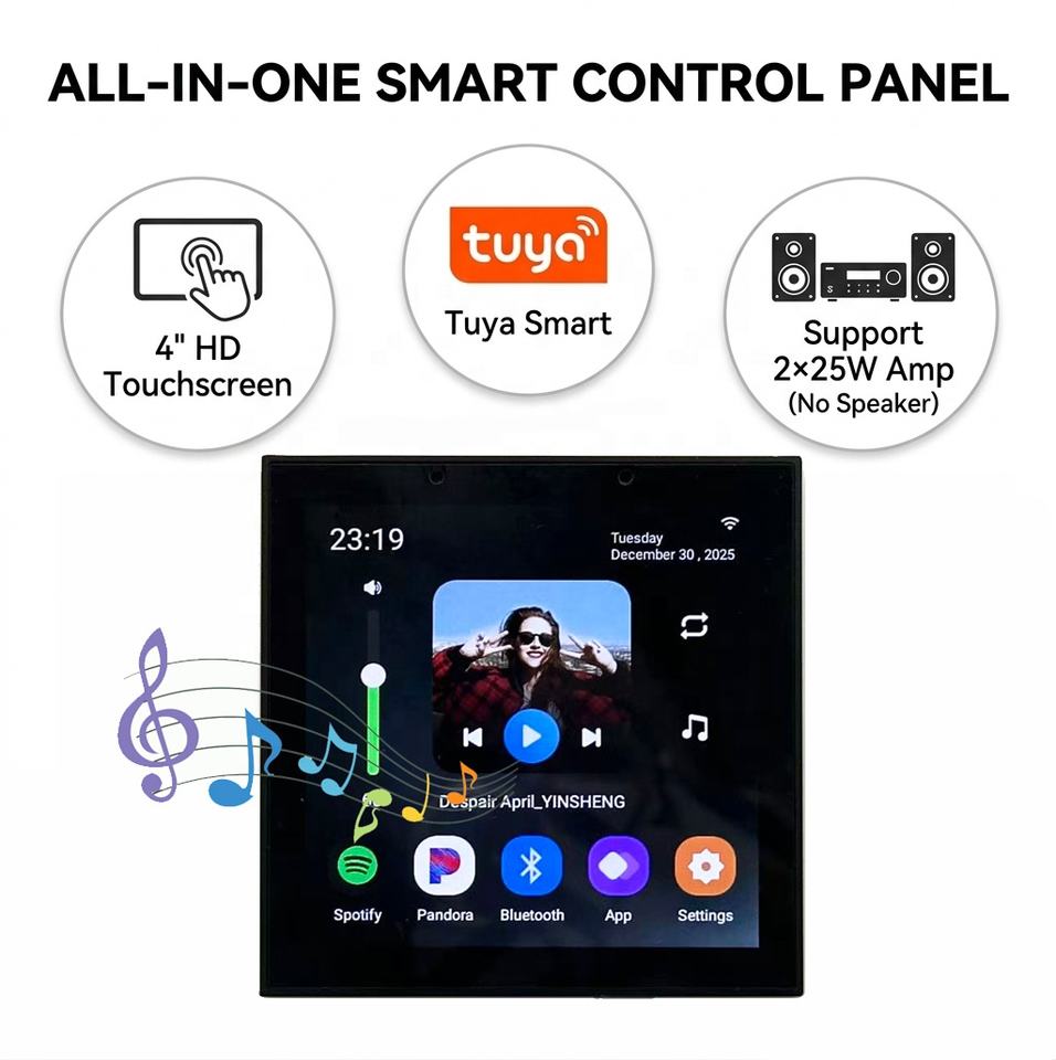 Panel de Control Inteligente para el Hogar de 4 Pulgadas, Reproductor de Música con Android 11, Pantalla Táctil de Pared para Automatización del Hogar, Compatible con Altavoz Amplificador de 2x25 W, Spotify
