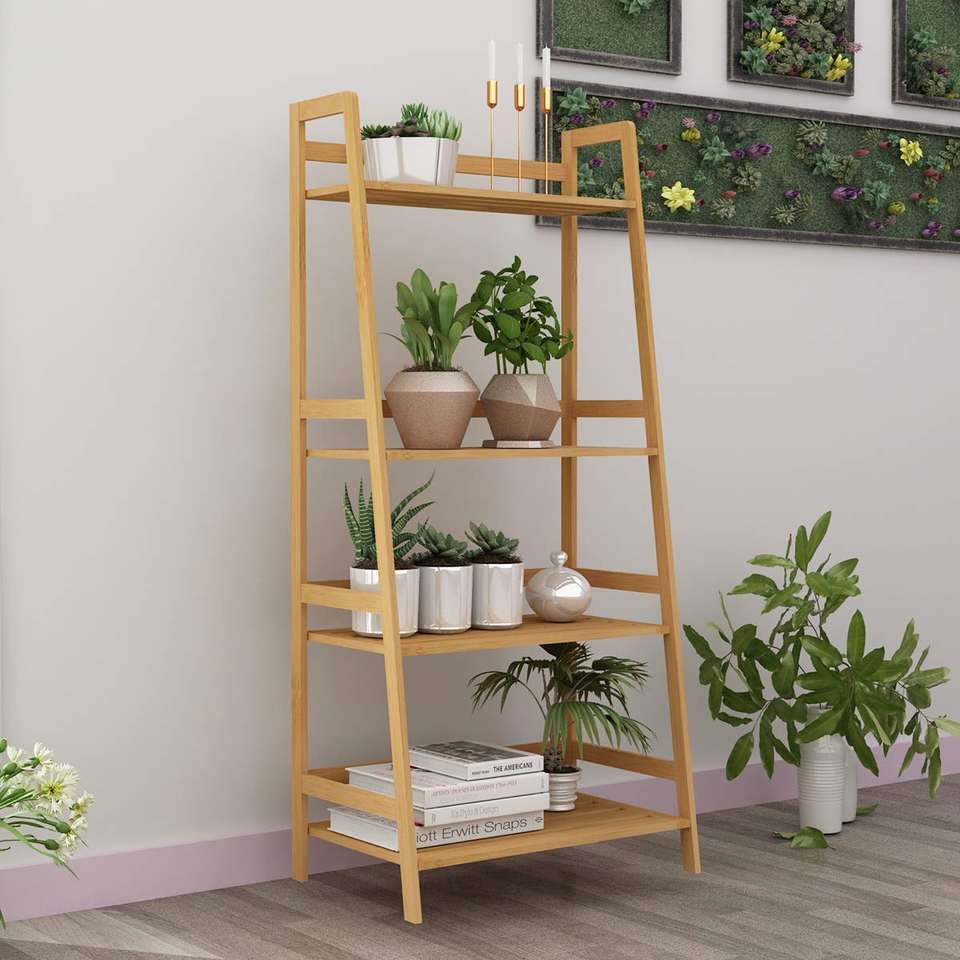 Estante de almacenamiento de bambú de 4 niveles Estantería Escalera Estante Organizador de almacenamiento