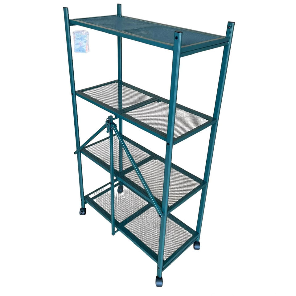 Estantería Metálica Plegable de 4 Niveles con Ruedas, Estantes de Almacenamiento Modernos con Ruedas para Sala de Estar y Oficina en Casa, Ahorro de Espacio