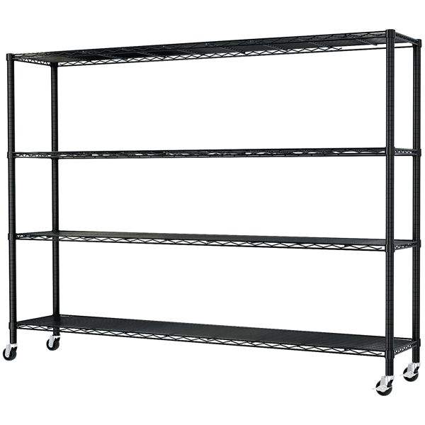 Estante de Exhibición de Hierro de 4 Niveles con Espaciado de Estantes Ajustable y Ruedas, Recubrimiento en Polvo Negro, 150*60*192cm