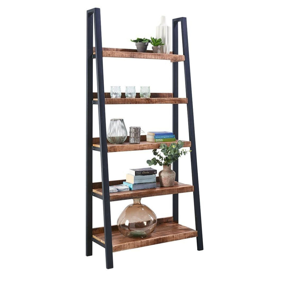 Estantería de 4 niveles con gabinete de almacenamiento, estantería moderna con aspecto de madera, unidad de estantería con marco de metal negro para sala de estar