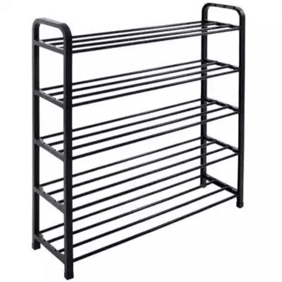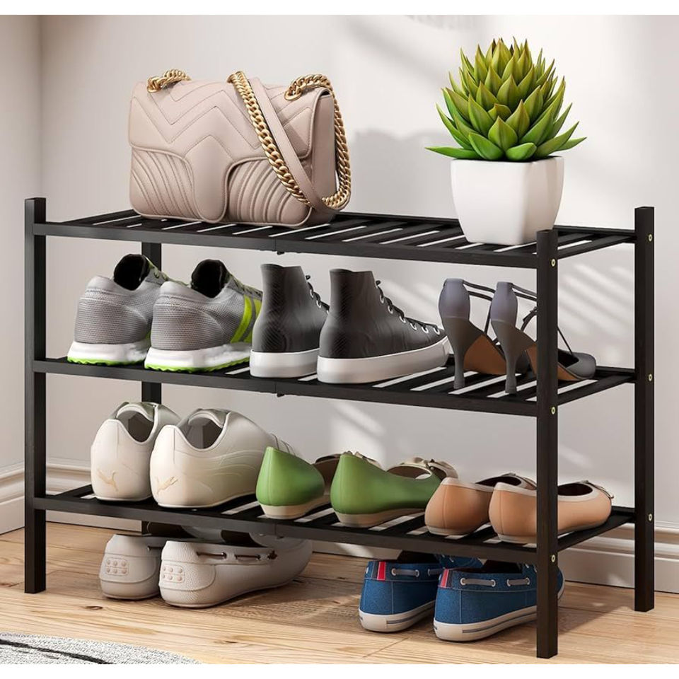Organizador de zapatos de metal de 4 niveles, ahorrador de espacio, estante para zapatos independiente para armario, pasillo, dormitorio, acabado negro resistente.