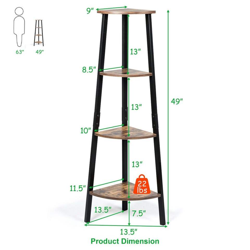 Estantería Metálica de 4 Niveles, Librería de Esquina y Soporte para Exhibición de Plantas, Estanterías y Librerías