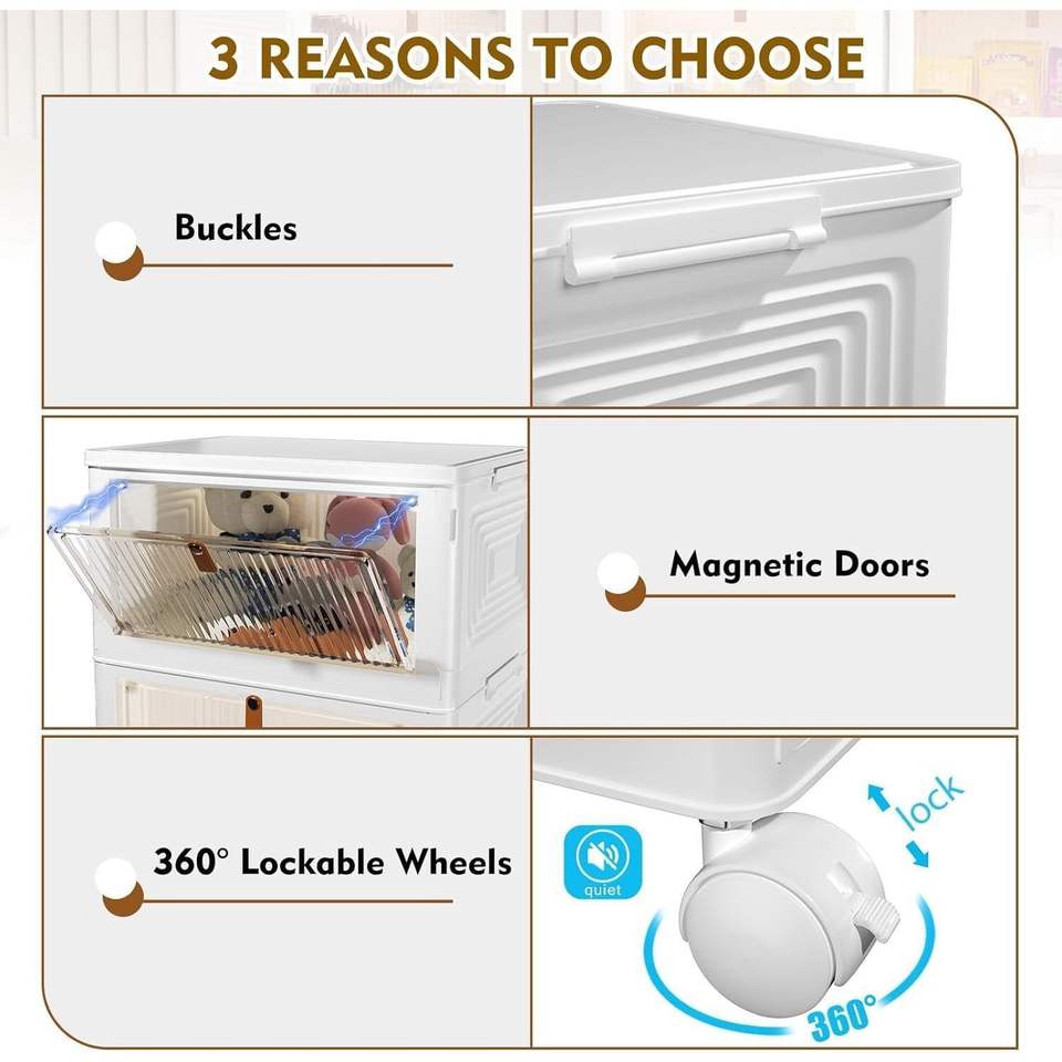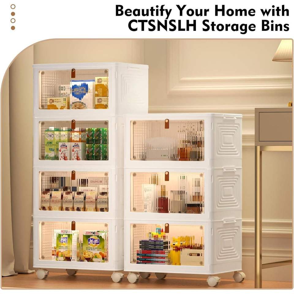 Organizador de Cajas de Almacenamiento de Plástico de 4 Niveles con Tapas, Plegables y Apilables para Dormitorio, Sala de Estar, Oficina